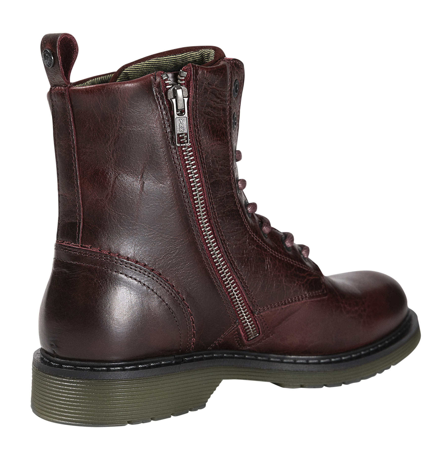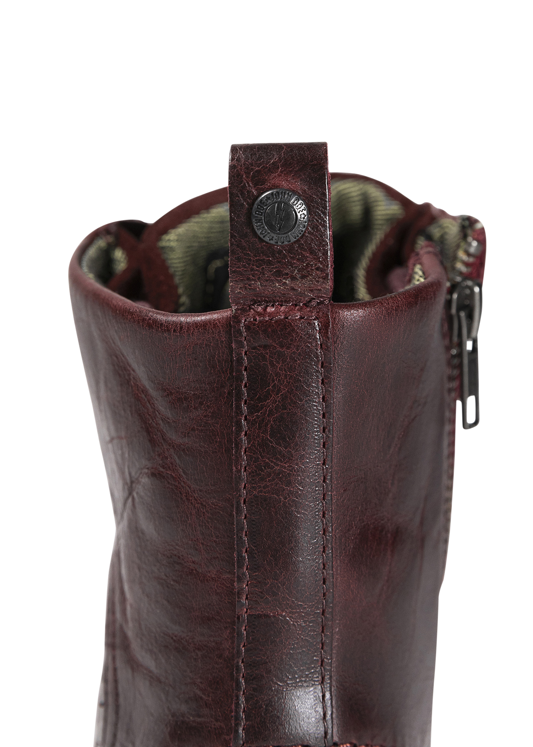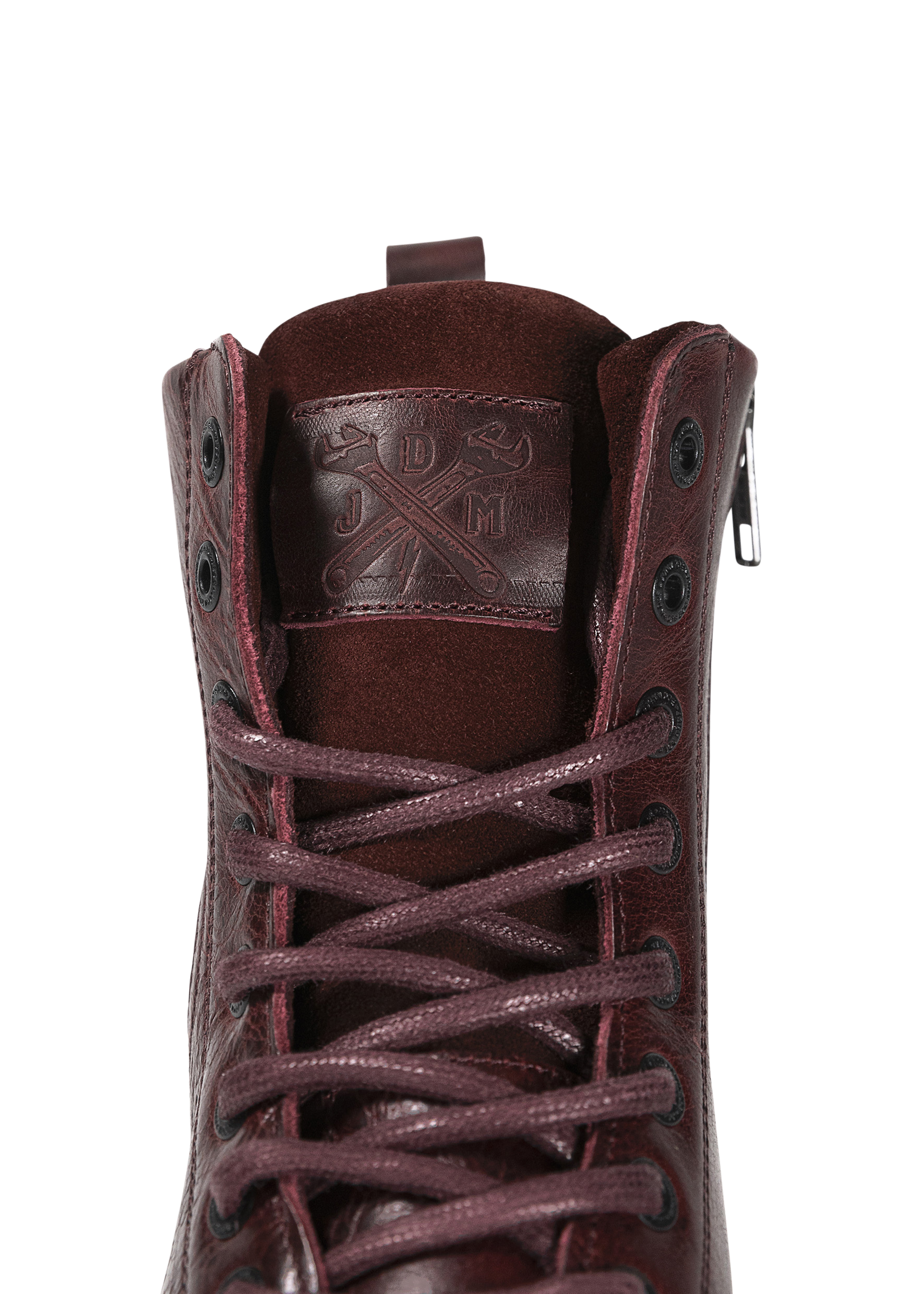 Piękna skóra w stylu vintage i detale, takie jak logo John Doe wytłoczone ze skóry na ochraniaczu kostki i metalowy emblemat JDM dopełniają klasyczny wzór naszych „sześćdziesiątek”.