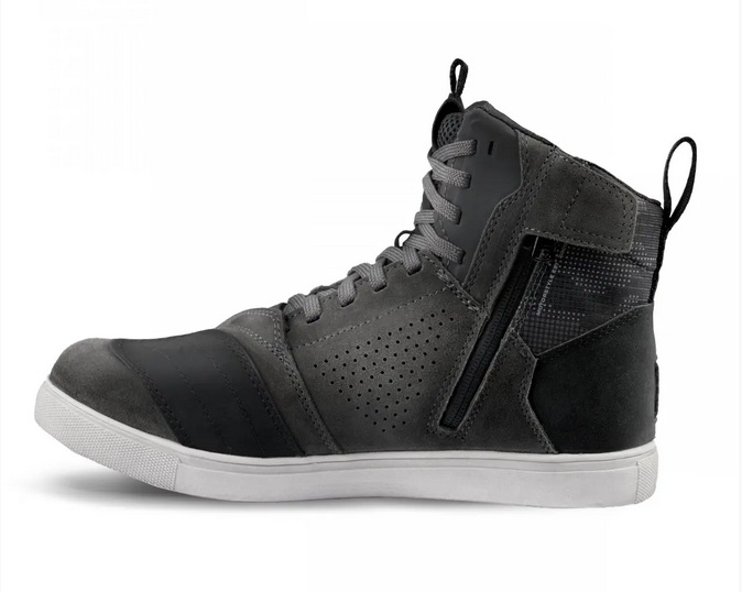 Nowa generacja butów motocyklowych SHIMA REBEL 2.0 VENTED doskonale łączy miejski styl z wyjątkową wentylacją. Trampki zapewniają wysoką przewiewność dzięki obszernej perforacji punktowej oraz perforowanemu językowi wykonanemu z tkaniny mesh. W kwestii bezpieczeństwa model oferuje solidne wzmocnienia na pięcie, kostce i palcach oraz poprzecznie wzmacnianą gumową podeszwę, zapewniającą stabilność i ochronę w każdych warunkach drogowych. Wnętrze buta wyposażone jest dodatkowo w polipropylenową wkładkę wzmacniającą. Buty posiadają antypoślizgowe przetłoczenia do zmiany biegów umieszczone na nowoczesnej nakładce wykonanej z oddzielnego kawałka materiału. Specjalna konstrukcja dostosowana do pozycji stóp podczas jazdy motocyklem gwarantuje stabilność i komfort nawet podczas wielogodzinnych tras. Osłonka sznurowadeł, duże panele odblaskowe oraz możliwość regulacji sznurowadeł sprawiają, że buty REBEL 2.0 VENTED są funkcjonalne i praktyczne. Dostępne są w klasycznej czerni i praktycznej szarości oraz w szerokiej rozmiarówce od 41 do 48, trampki są idealnym wyborem dla wszystkich motocyklistów, którzy cenią sobie doskonałą wentylację i komfort na motocyklu nawet w najbardziej upalne dni.